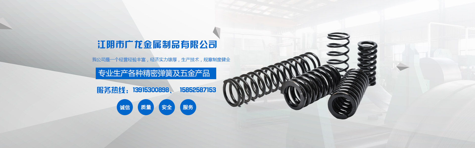 江陰市廣龍金屬制品有限公司,位于風景美麗的江陰市。我公司是一個經(jīng)營經(jīng)驗豐富,經(jīng)濟實力雄厚,生產(chǎn)技術(shù),規(guī)章制度健全,服務(wù)多元化,產(chǎn)品多元化,產(chǎn)品質(zhì)量高的金屬制品公司。主營產(chǎn)品:電動工具彈簧、各類化妝品噴霧壓簧、各類異形彈簧、化妝品瓶蓋配重彈簧、精密儀器壓簧、卡簧、拉簧、扭簧、塔簧、油封彈簧、座椅掛鉤等彈簧兼容行業(yè)多的綜合性公司,如果您對我公司的產(chǎn)品服務(wù)感興趣,請在線留言或者來電咨詢,聯(lián)系電話:13915300898!